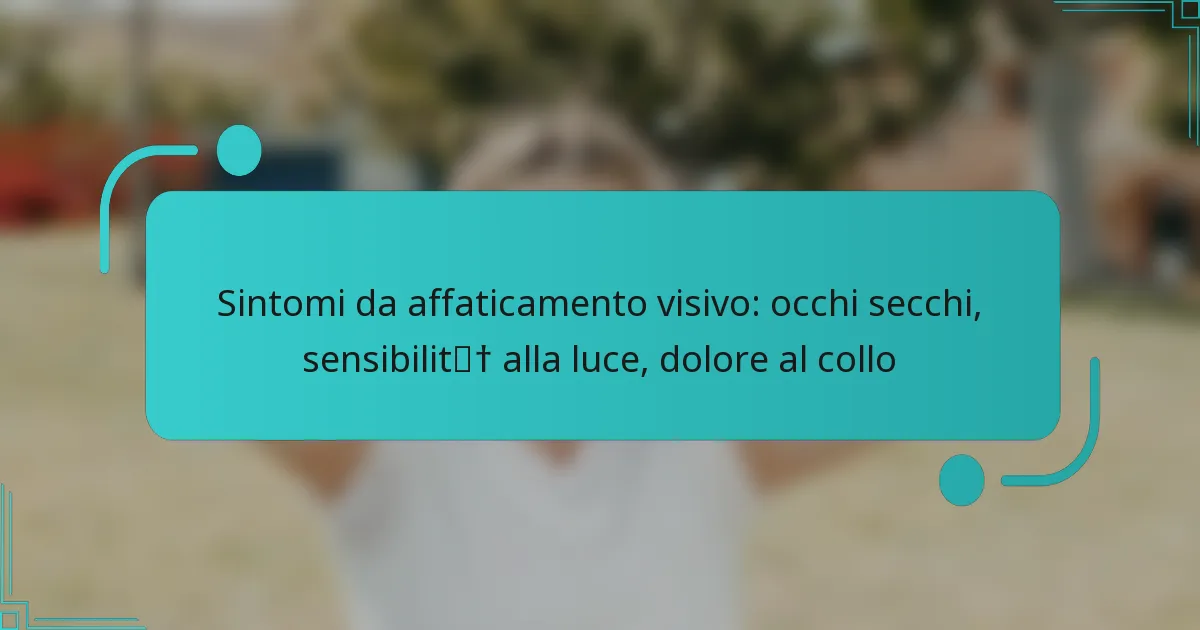 La fatica visiva, nota anche come affaticamento oculare digitale, può portare a disagio e riduzione della produttività a causa di un prolungato utilizzo dello schermo. Sintomi come visione offuscata, affaticamento degli occhi e mal di testa sono comuni e spesso derivano da fattori come l’esposizione alla luce blu e condizioni di visione inadeguate. Comprendere questi sintomi è fondamentale per implementare strategie di prevenzione efficaci. Key sections in the article: Toggle Quali sono i sintomi della fatica visiva? Visione offuscata come sintomo comune Affaticamento oculare e le sue manifestazioni Mal di testa associati all’uso prolungato dello schermo Altri potenziali sintomi della…